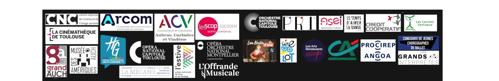 Les collectivités territoriales nous accompagnent également : Les départements de la Haute Garonne, du Gard et du Lot, Grand Auch Cœur de Gascogne, Le musée des Amériques d’Auch, La ville de Millau, la Communauté de Communes Aubrac, Carladez et Viadène. Des écoles et associations favorisent et accompagnent nos créations cinématographiques et audiovisuelles en Occitanie : ENSAV, ISPRA, Fotogram, Grands Causses Cinéma.